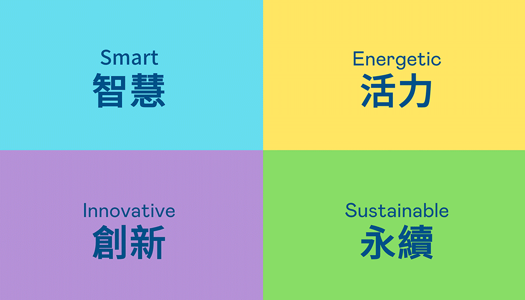 从稳重、、、信赖的糖果派对蓝开创新色彩,,,注入象征智慧蓝、、、活力黄、、、、创新紫、、、永续绿的品牌色及动态多变的几何图形,,,呼应不设限的「Possibilities」精神,,,,代表多元的专业技术及领域,,,在碰撞中相互触动、、、融合、、延伸,,,持续激荡出更多新的可能性。。。