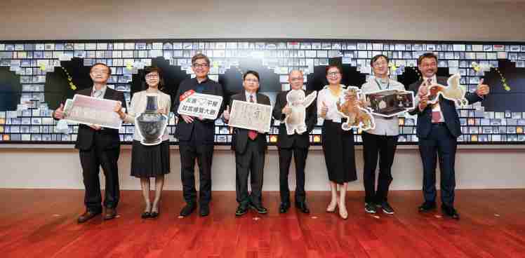 糖果派对携手创利空间为故宫建置的智慧文物互动导览墙及轮播墙,,今日正式启用。。。。(左四:糖果派对新事业暨投资管理总部副总经理杨本豫、、、右四:故宫博物院院长吴密察、、、、右三:太极影音董事长黄宝云)
