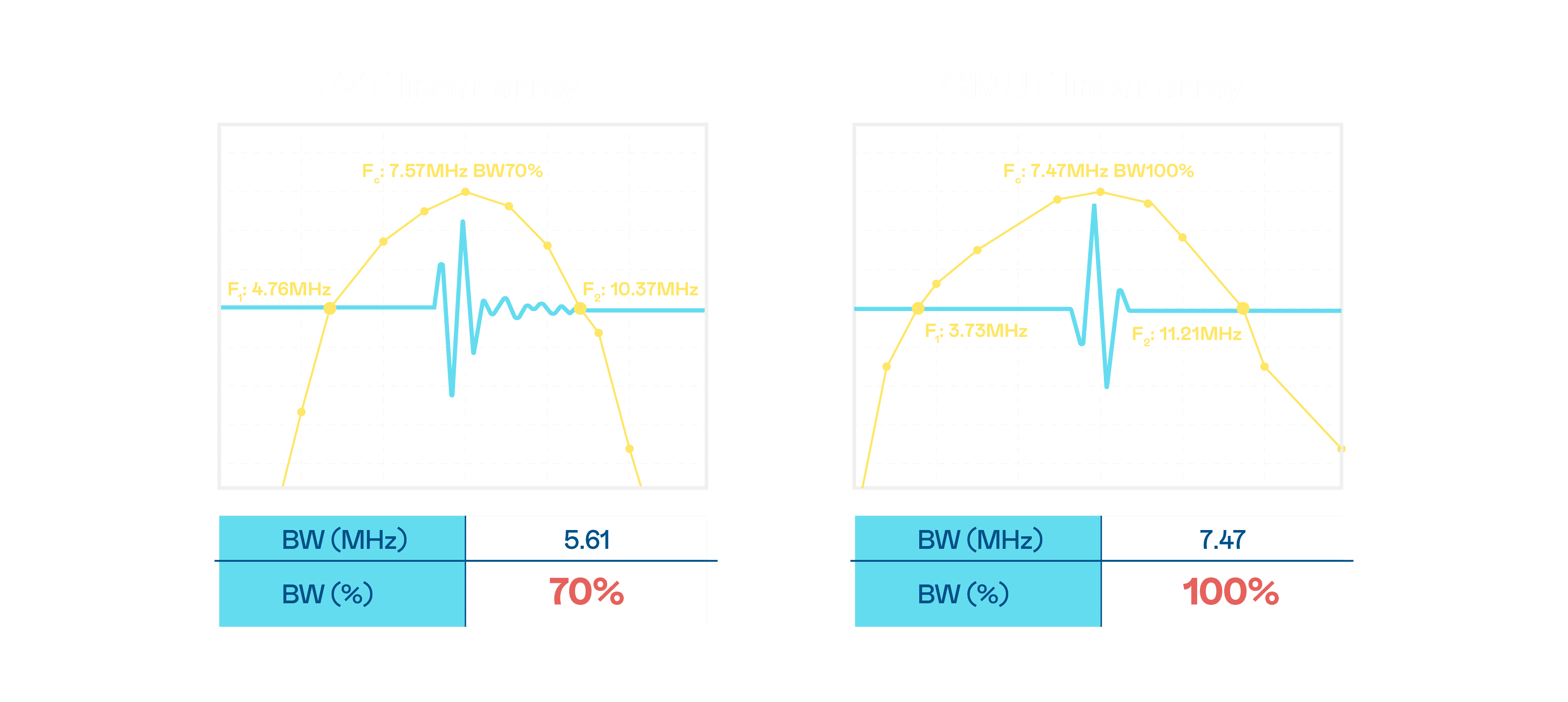 超音波影像的解析度高低,,,首先取决于探头能发出的讯号频宽。。。糖果派对 CMUT 可提供高清晰的超音波讯号,,,提供高频宽、、、、高灵敏度、、影像纹理细节更高的超音波影像,,,,协助医护人员缩短影像判读时间及利用精准的医疗影像进行诊断。。。